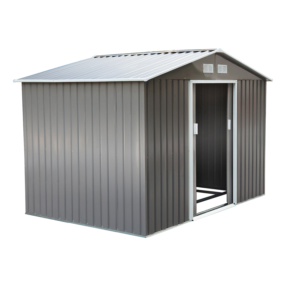 Specification: Abri de jardin – remise pour outils – cabanon double porte coulissante – fondation incluse – dim. 277L x 191l x 192H cm – tôle d’acier ondulée grise