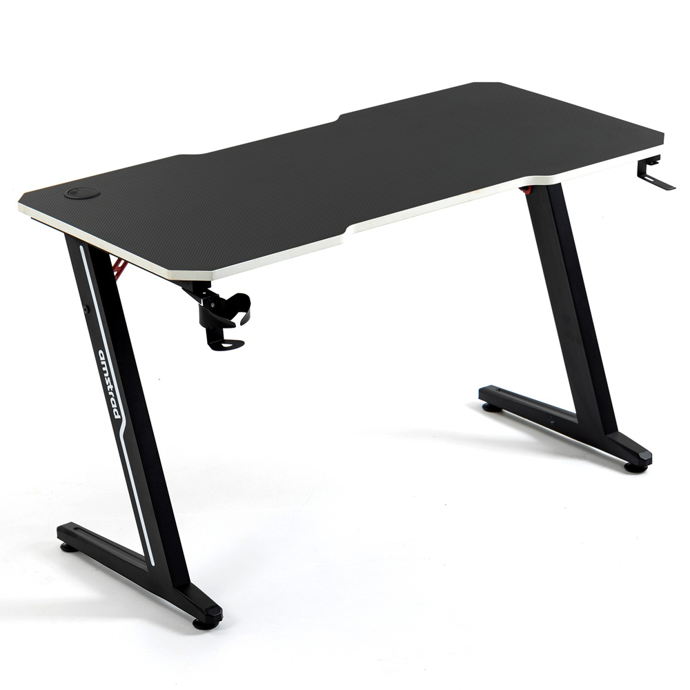 Amstrad vous propose son bureau gamer ou informatique AMS-DESK120Z-WHITE avec finition blanche Points forts :‚ñ∫ Surface rendu “carbone”‚ñ∫ Finition blanche sur tout le tour du bureau et sur les pieds‚ñ∫ Accessoires inclus : Porte gobelet & casqueCaractéristiques :- Largeur : 120 cm- Profondeur : 60 cm- Hauteur : 73 cm- Epaisseur : 18 mm- Pieds en métal forme en Z- Porte gobelet- Support casque- Trou passe-c√¢bles- Pieds ajustables pour une stabilité parfaite- Poids brut : 20 Kg