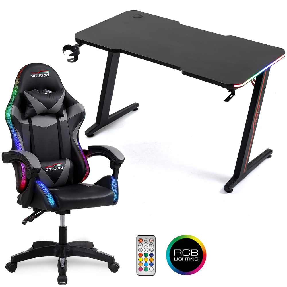 Amstrad Pack Bureau DESK120Z-LED & fauteuil gamer 900-LED-BK – 1m20 – Retro éclairage LED RGB