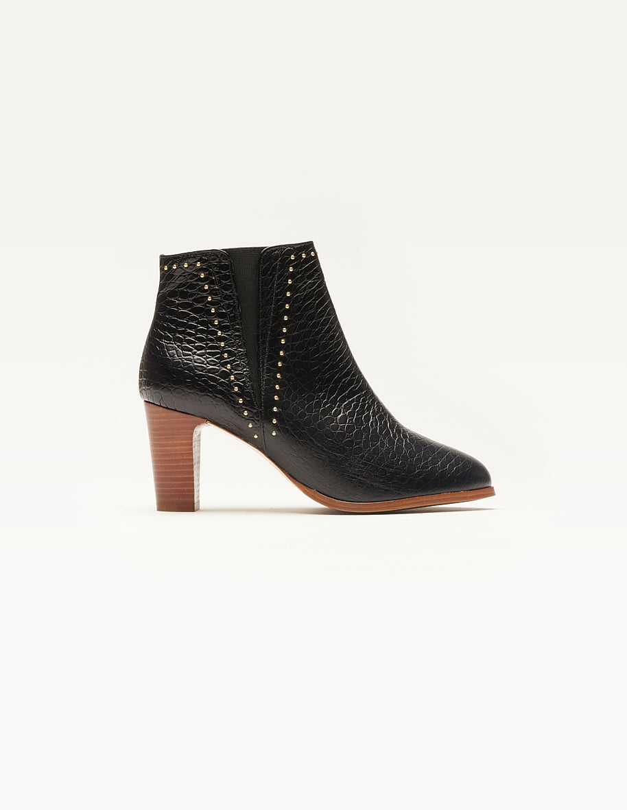 Ankle boots Jeanne H – Black crocodile leather and studs