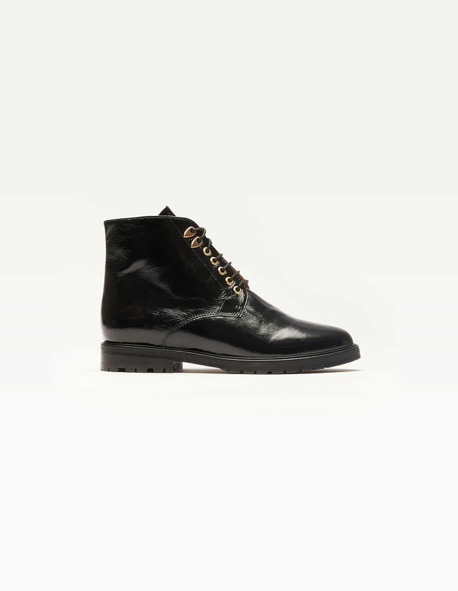 In line with our responsible approach, we have chosen to retain the stocks of M.Moustache models under the Odaje brand: these are exactly the same products, with the exception of the logo on the sole. Therefore, you might very occasionally receive one of these models.- Black pleated leather lace-up boots- Made from leather sourced in Spain- Crafted in our Portuguese workshop- Sole made of leather, neolite, EVA, and rubber- Heel height: 3 cm- Lining and insole made of goat leather