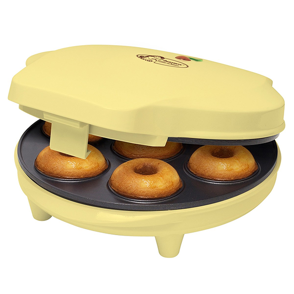 adm218sd – appareil à donuts 700w – L’appareil à donuts ADM218SD de BESTRON vous permettra de préparer 7 beignets délicieux en un instant.La plaque de cuisson de haute qualité avec surface antiadhésive permet au beignets de ne pas accrocher et facilite le nettoyage. – Puissance : 700 WPrépare 7 beignets délicieux en un instantPlaque de cuisson de haute qualité avec surface antiadhésiveFacile à nettoyerEquipés de lampe témoin marche/arrêt et de prêt à utiliserEnveloppe en plastique résistant à la chaleurPossibilité de rangement à la verticale, donc peu encombranteContrôle automatique de la températureEnroulement pratique du c√¢bleDe nombreuses recettes inclusesDimensions : 25,7 x 20 x 9,3 cmPoids : 1.26 kgCouleur : Jaune
