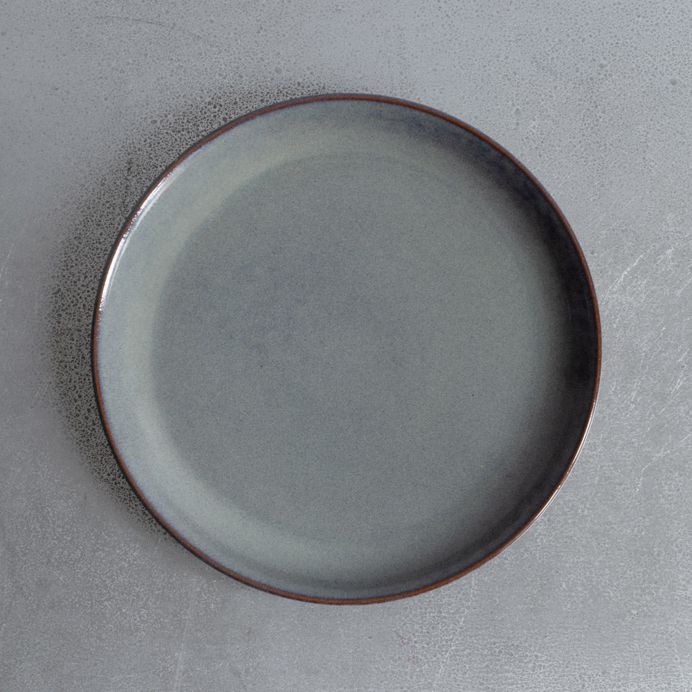 Assiette plate en grès fin jaspé à l’aspect mat et poudré