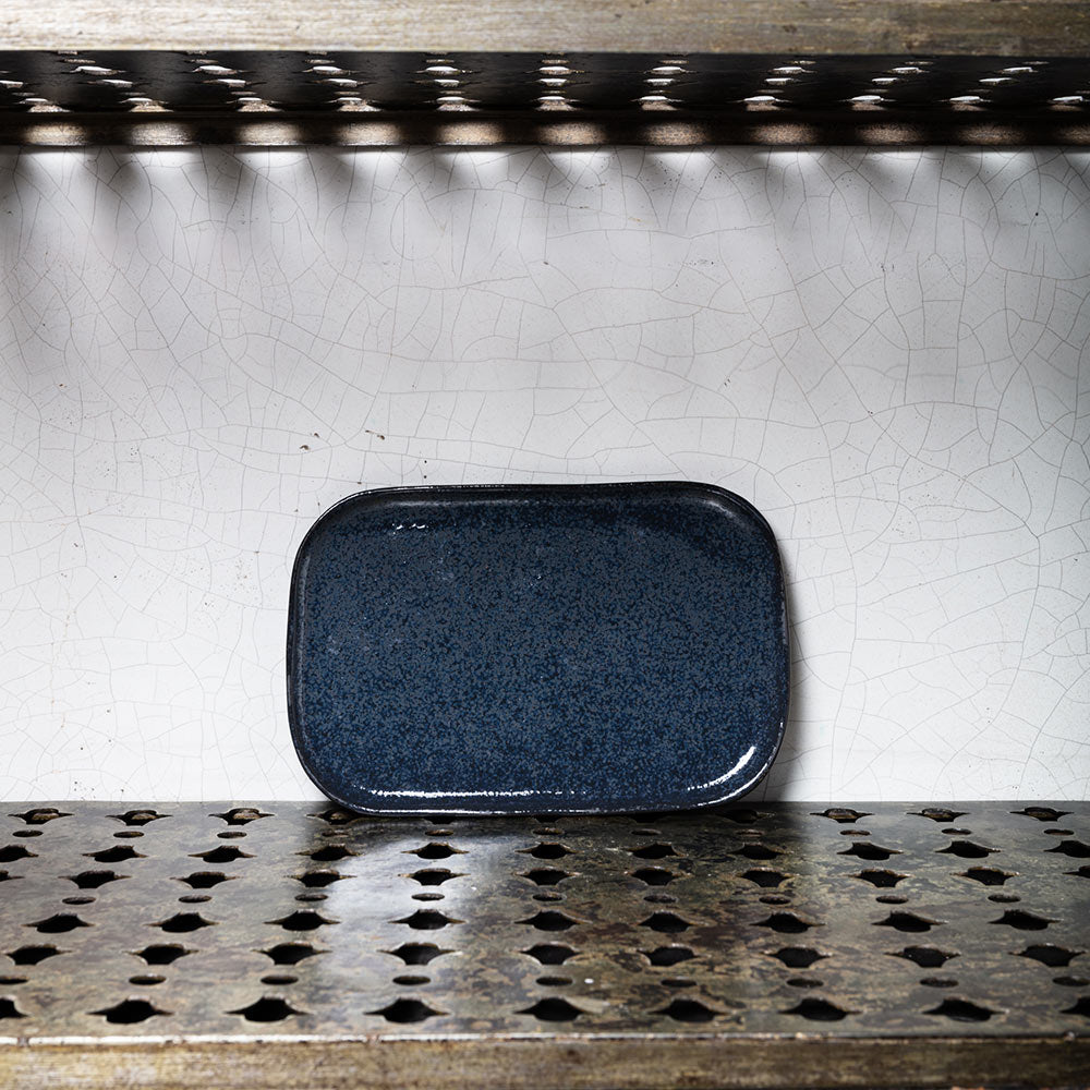 Assiette plate en grès inspirée du célèbre service American Modern Dinnerware créé dans les années 50 par le designer américain Russel Wright, et du traditionnel bento japonais