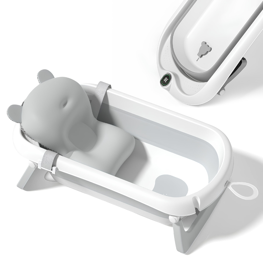 Baignoire bébé pliable – Thermomètre et coussin inclus – GREY