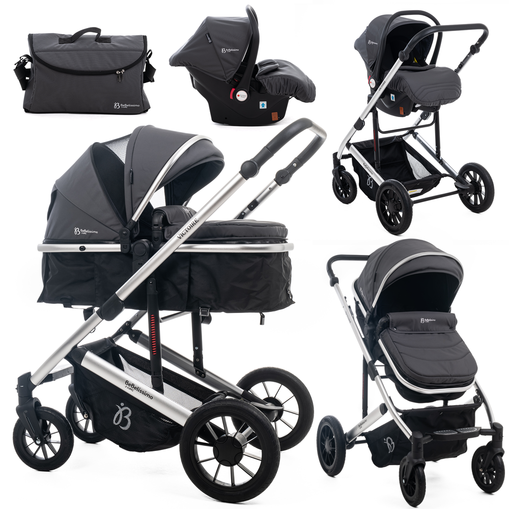 Bebelissimo – poussette combinée trio 3 en 1 – siège auto 0m ‚Äì landau ‚Äì dès la naissance ‚Äì jusqu‚Äôà 22kg ‚Äì victoire i-size – gray