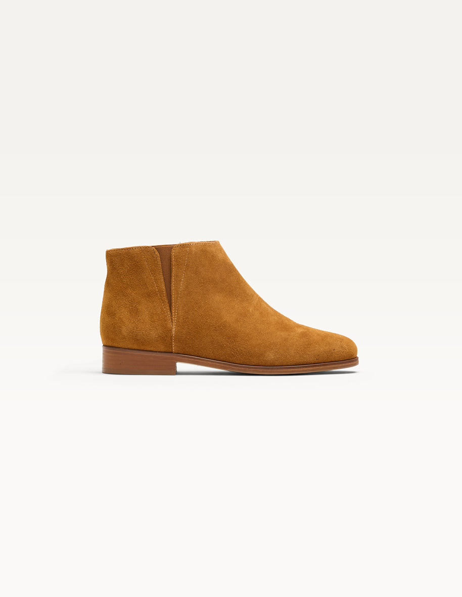 – Amber suede ankle boots – Made from LWG-certified Italian-sourced suede – Crafted in our Portuguese workshop – Leather sole with rubber injection pad – Sole height: 3 cm – Goat leather lining – Goat leather insole