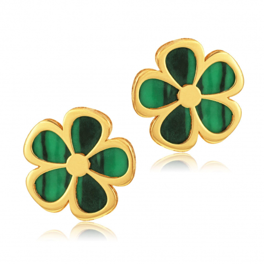 Ces boucles d’oreilles en or jaune 18 carats/750 millièmes aux couleurs de l’espoir sont des bijoux élégants et gracieux. Ils évoquent des fleurs aux lignes parfaites, dont les pétales verts sont en résine. Étonnez une femme de votre entourage en lui offrant ces bijoux atypiques d’un excellent rapport qualité-prix.