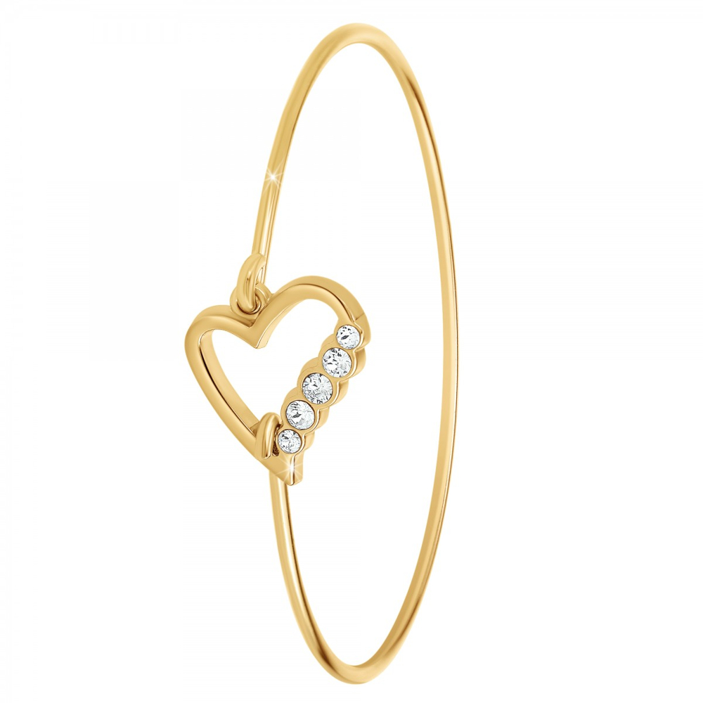 Bracelets SC BohèmeAlliage résistant avec plaquage haute résistance doré à l’or fin.Orné de Cristaux scintillantsDiamètre : 55mmDimensions c≈ìur : 16x18mmFermoir : A ouverture