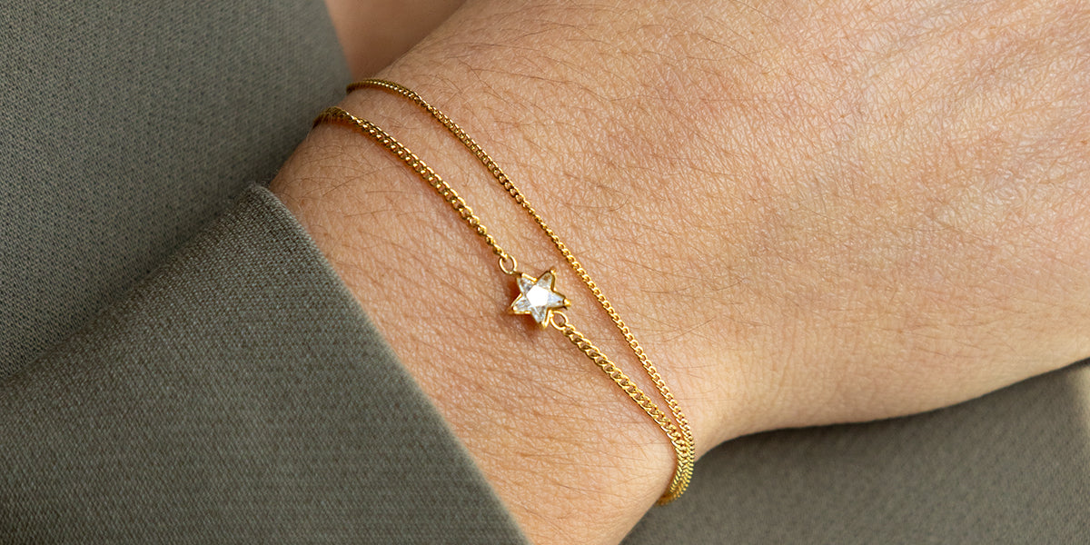 Bracelet coulissant en acier uni ou doré en double chaîne. L’une des chaînes est sertie d’une étoile sur laquelle se trouve un zirconium.Il est ravissant de mélanger plusieurs bracelets pour obtenir une magnifique accumulation.
