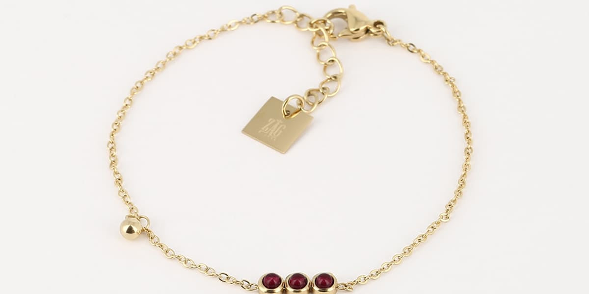 Bracelet chaîne en acier doré à l’or fin sur lequel est attaché un trio de cabochons de pierres fines montés en « barrette ». Il est fin et délicat et se porte avec d’autres bracelets de nos collections. Pour celles qui hésitent à porter des pierres, ce bracelet est une belle introduction à l’univers de ZAG.