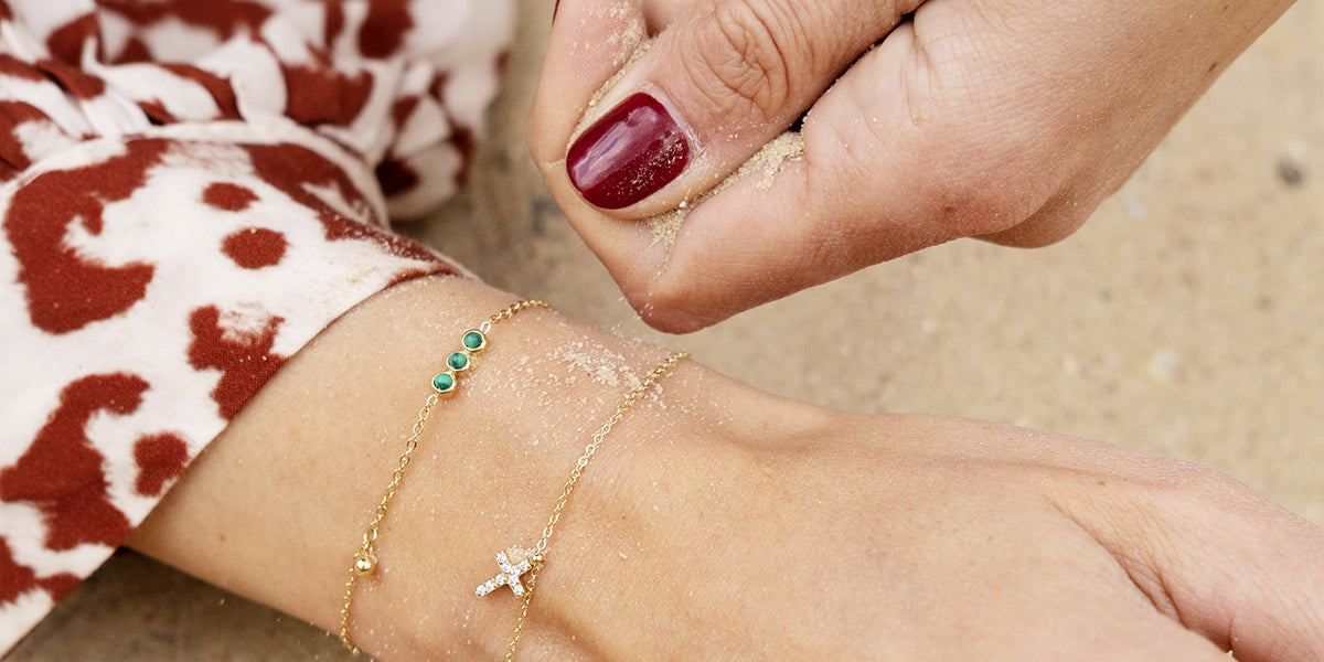 Décliné en boucles d’oreilles, chaîne de cheville et collier
