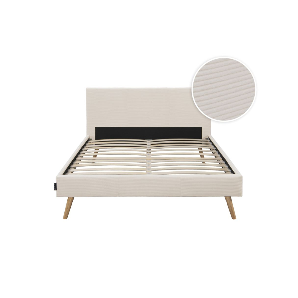 Cadre de lit LODI style scandinave en velours côtelé avec pieds bois