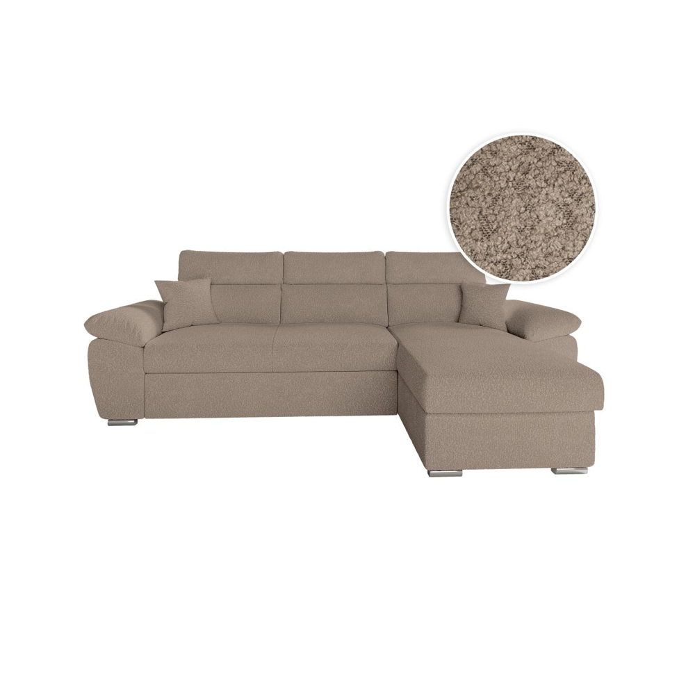 Canapé KOMECO d’angle réversible convertible avec coffre et têtières réglables en tissu bouclette