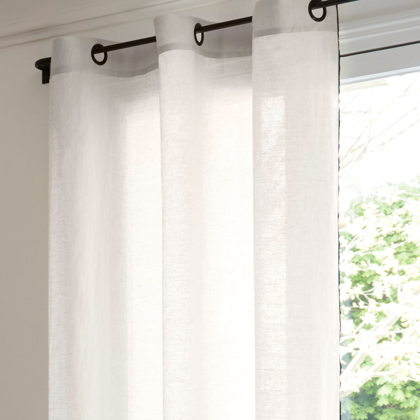 The Carlina light beige curtain is beautiful in its obvious simplicity. Made with black eyelets and highlighted with a black bourdon stitch, this light linen curtain is easy to install on your windows and dress them in a delicate undulation with bohemian charm.