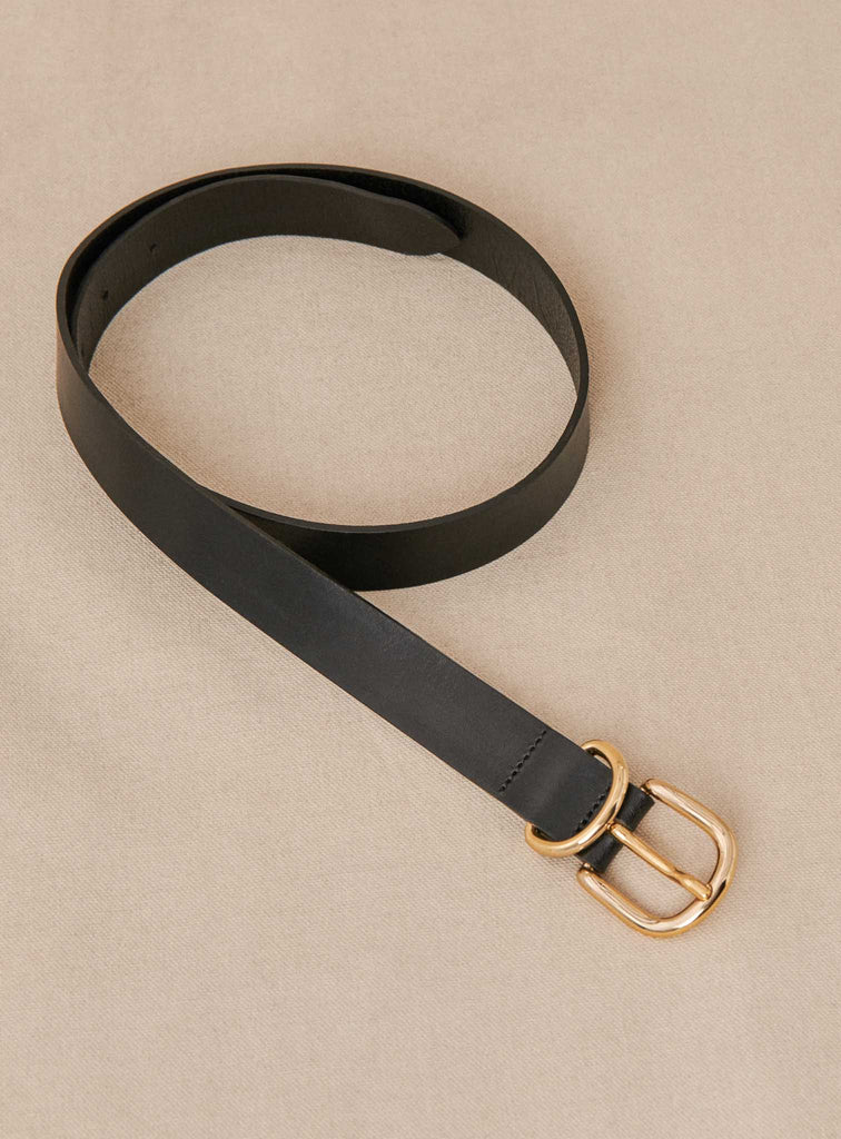 – Ceinture en cuir – Cuir lisse noir – Boucle dorée