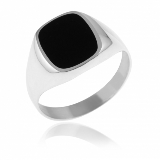 Chevalière en or gris et onyx