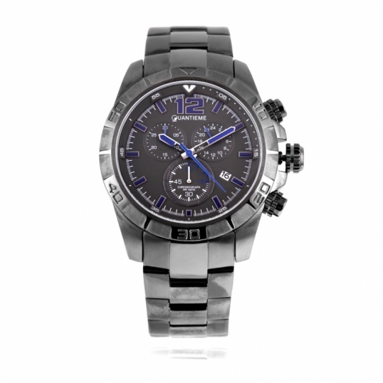 Chronographe homme, boîte et bracelet acier, étanche 100 m, verre minéral