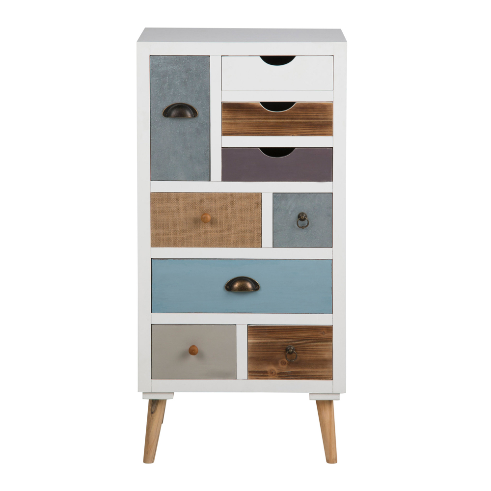 Commode Thames blanche avec 9 tiroirs multicolores. Livrée entièrement assemblée, cette commode de couleur blanche apporte à la fois style et fonctionnalité à votre maison. Notre commode Thames avec 9 tiroirs en plusieurs couleurs est réalisée dans un design amusant et délicieux. Livré CONSTRUIT, prêt à être mis en place. Il suffit de monter les pieds sur la commode. Vous pouvez utiliser la commode à plusieurs endroits de votre maison et dans plusieurs contextes. Ce produit est créé avec un souci du détail, ce qui garantit à la fois un attrait esthétique et une grande durabilité. Il est con√ßu dans un souci à la fois de fonctionnalité et de style, ce qui en fait le choix parfait pour n‚Äôimporte quelle pièce de votre maison. Les matériaux utilisés sont de haute qualité, ce qui confère au produit une longue durée de vie et lui permet de résister à une utilisation quotidienne. Que ce soit pour le rangement ou comme ajout décoratif, ce produit rehaussera votre décor et apportera plus de confort et d’élégance à votre maison.