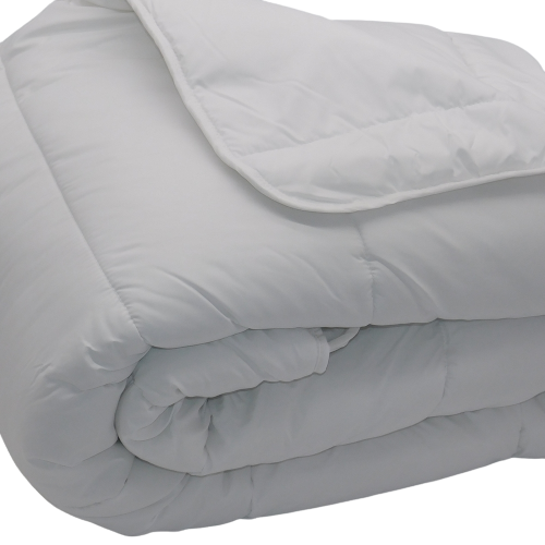 Couette 220x240Tissu Microfibre 80g BlancGarnissage 240grs/m² de fibre PolyesterCoins ronds-Double piquage-Biais Polycoton couleur Vendue dans sa valisette de rangementFabrication Française par MORTREUX SAS