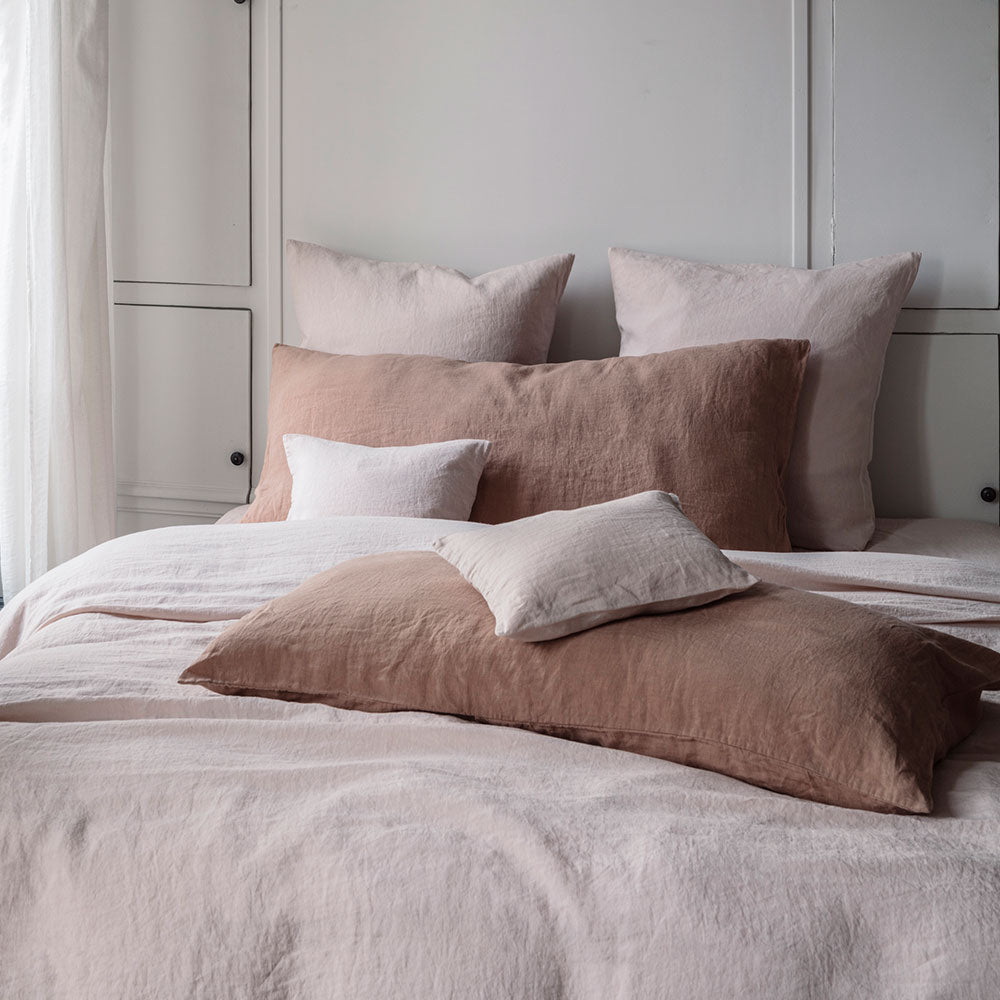 Coussin rectangle en lin lavé – Rose Argile