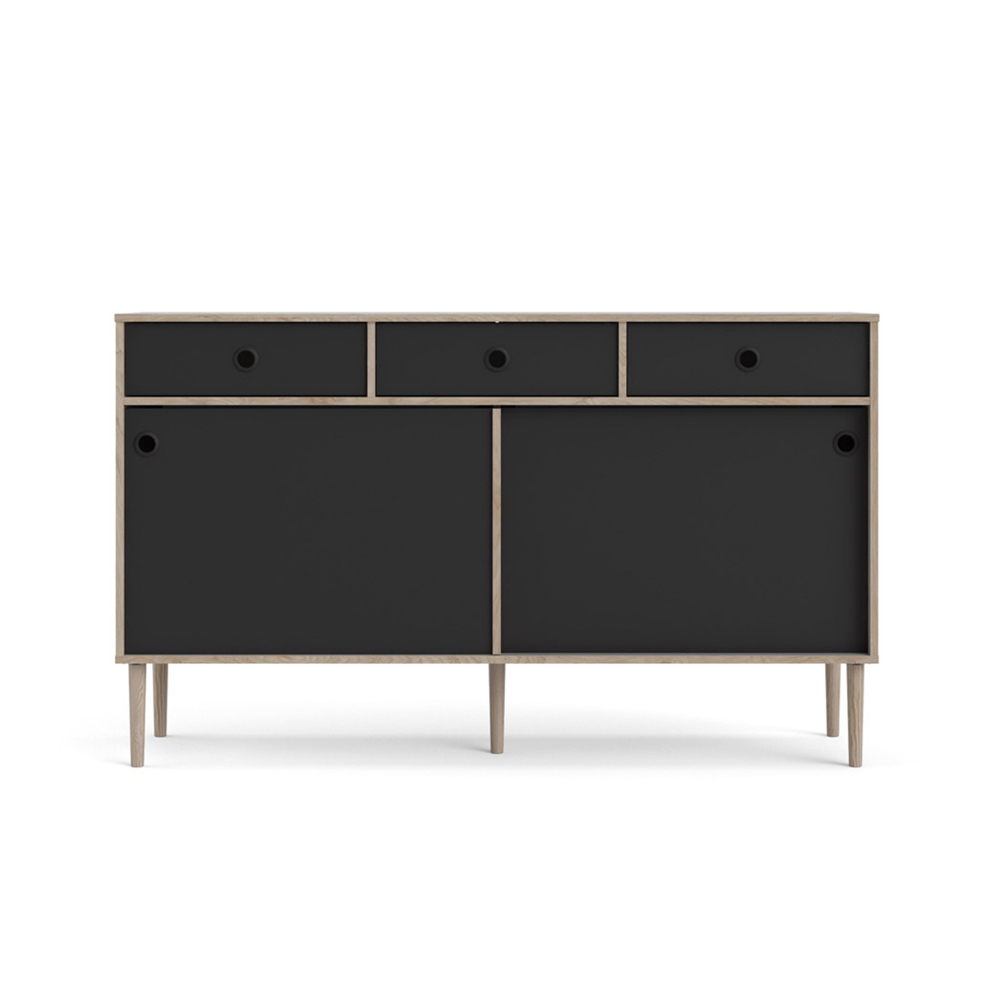 Buffet Penny 2 portes coulissantes et 3 tiroirs, décor Hickory et noir mat est un buffet de couleur Noir qui apporte à la fois style et fonctionnalité à votre intérieur. Buffet Penny 2 portes coulissantes et 3 tiroirs, décor Hickory et noir mat. Ce produit est créé avec un souci du détail, ce qui garantit à la fois un attrait esthétique et une grande durabilité. Il est con√ßu dans un souci à la fois de fonctionnalité et de style, ce qui en fait le choix parfait pour n‚Äôimporte quelle pièce de votre maison. Les matériaux utilisés sont de haute qualité, ce qui confère au produit une longue durée de vie et lui permet de résister à une utilisation quotidienne. Que ce soit pour le rangement ou comme ajout décoratif, ce produit rehaussera votre décor et apportera plus de confort et d’élégance à votre maison.