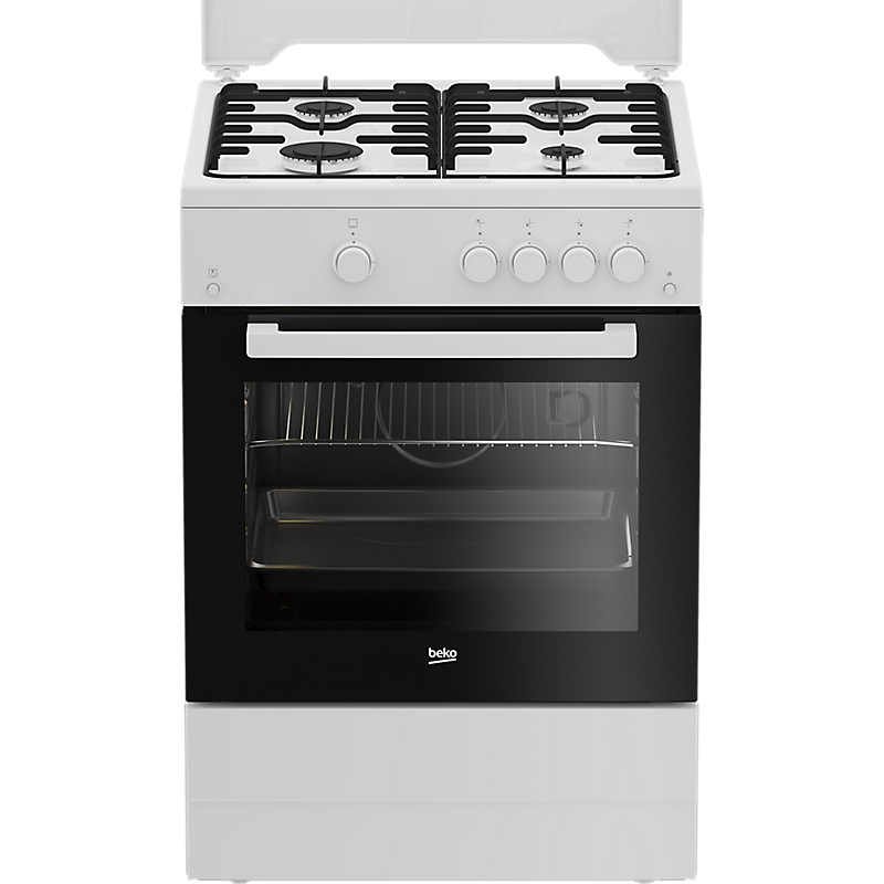 Specification: Cuisinière Beko FSG62010FW 60 cm, 4 feux gaz, four gaz 73 litres, coloris blanc