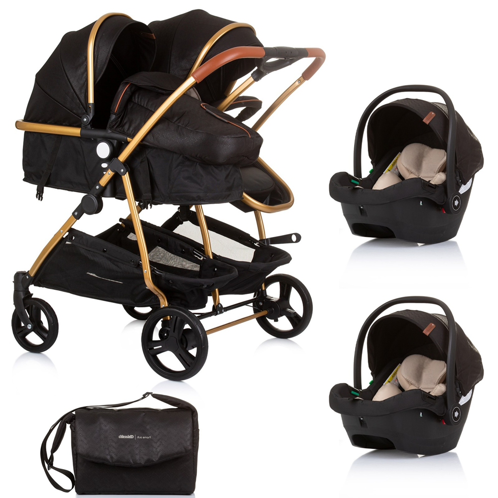 Specification: DUO SMART Poussette jumeaux ou enfants rapprochés largeur 79 cm Noir + 2 cosy noir
