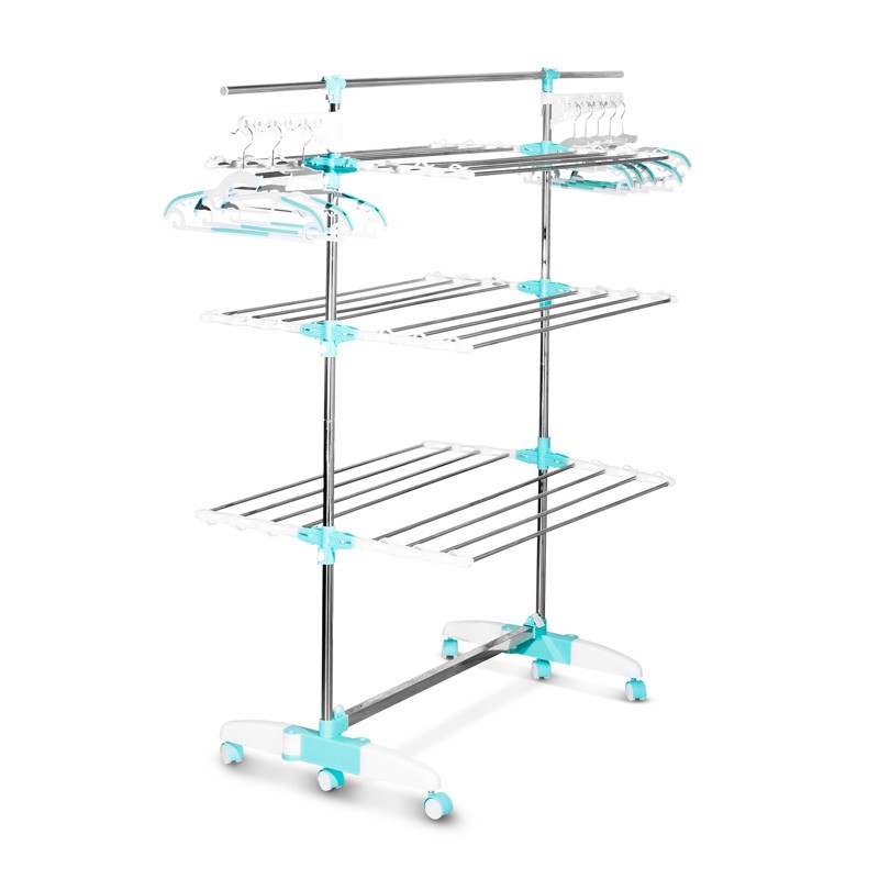 Ce séchoir à linge multifonctions ULTRA+ de la marque Garnier vous donnera envie de prendre soin de votre linge gr√¢ce à sa capacité d’étendage de 28 mètres et 20 kg max.Les caractéristiques de l’étendoir ULTRA+:Capacité : – 3 étages avec espace de séchage : 28 mètres – 2 supports pivotants pour cintres – Lot de 20 pinces à linge inox, ne rouillent pas et ne t√¢chent pas – Lot de 10 cintres plastiques antidérapants – 36 clips porte chaussettes et lingeries – 2 barres télescopiques de 91 et 170 cm spéciales nappe et linge de litPraticité : – 6 maxi plateaux livrés déjà montés et réglables en hauteur gr√¢ce aux 6 clips – 6 roues pour un déplacement facile, 4 avec freins – Barres rabattables et pieds pliables, encombrement réduit – Rangement facileSolidité : – Structure en acier inoxydable anti rouille, diamètre 9.5 / 19 /22 mm – Poids supporté maximum : 20 kg – Pieds larges pour une grande stabilitéDimensions ouvert : 170×66.5×150 cmDimensions plié : 91×24.5×150 cm,