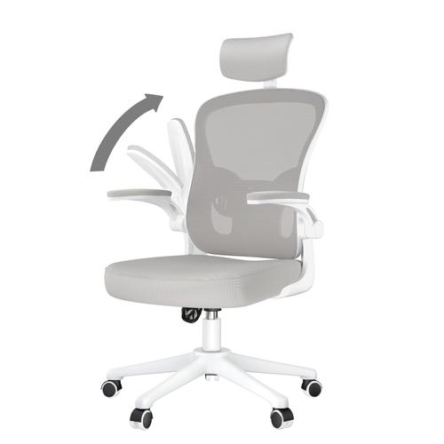 Fauteuil de Bureau – Bigzzia Ergonomique Siège-Fauteuil avec 2D Accoudoirs, Hauteur Appui-tête Soutien Lombaire Dossier Règalable – Gris et Blanc pas cher