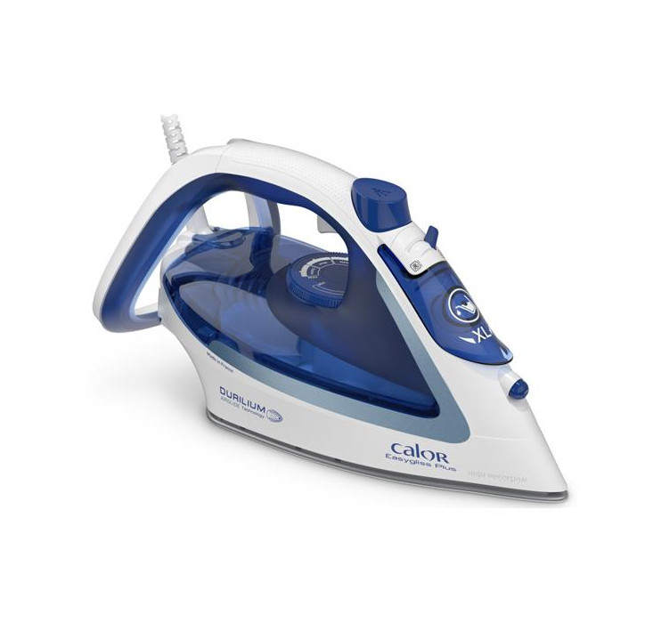 fv5715c0 – fer à repasser vapeur 2400w 45g/mn – Le fer à repasser vapeur Easygliss Calor FV5715C0 est équipé de la semelle dotée de la technologie Durilium Airglide de Calor, qui garantit une glisse parfaite et une plus grande puissance de vapeur, pour simplifier et raccourcir vos sessions de repassage. Sa puissance de 2¬†400¬†W offre un temps de chauffe express, associé à un débit de vapeur continu de 45¬†g/min pour des résultats rapides et à une fonction pressing ultra-efficace de 190¬†g/min pour venir à bout des plis les plus tenaces.n¬∞¬†1 de la glisseLa glisse la plus rapide de Calor. Meilleure performance vapeur. Profitez de performances ultimes avec la semelle n¬∞¬†1 de Calor, dotée de la technologie Durilium Airglide assurant une glisse exceptionnelle.Puissance de 2¬†400¬†W pour un temps de chauffe rapideParfaitement adapté à vos besoins quotidiens, ce fer vapeur d’une puissance de 2¬†400¬†W garantit un temps de chauffe rapide, pour des résultats irréprochables à tout moment.Un repassage efficaceUn débit de vapeur continu de 45¬†g/min maximum permet de raccourcir vos sessions de repassage, sans compromis sur l’efficacité.Fonction pressing pour les plis les plus tenacesUne fonction pressing extrêmement puissante de 190 g/minute élimine facilement les plis des tissus épais et les plis tenaces.Protection Anti-goutteProtégez votre linge des taches d’eau gr√¢ce à un système anti-goutte qui vous permet d’arborer un look irréprochable au quotidien.Diffusion optimale de la vapeurLes trous de la semelle sont 100% actifs permettant une diffusion optimale de la vapeur pour des sessions de repassage plus simples et à l’efficacité inégalée.Pointe de précision pour accéder aux zones difficilesCet appareil bien con√ßu est doté d’une pointe de précision pour éliminer facilement les plis, o√π qu’ils se trouvent, même dans les zones les plus difficiles d’accès comme les coutures et les cols.Réglages de vapeur automatiquesLe système de vapeur automatique garantit une simplicité inégalée en vous permettant de régler la combinaison de vapeur/température adaptée gr√¢ce à un bouton.Système de remplissage simple pour une praticité maximaleCe fer à repasser est doté d’un système de remplissage simple avec une large ouverture¬†, encore une fonctionnalité qui vous permet de faciliter vos séances de repassage.Semelle Durilium Airglide résistant aux rayuresOffrant une glisse exceptionnelle et des performances durables, la semelle haute qualité Durilium Airglide a été con√ßue pour durer dans le temps et garantir des résultats irréprochables, jour après jour.Défroissage vapeur vertical facilitéUn défroissage des grands vêtements et des vêtements délicats facilité gr√¢ce à la fonction de défroissage vertical, idéale éliminer les plis des costumes et autres vêtements ou tissus suspendus, même les rideaux.Des performances longue duréeLe réglage anti-calcaire maintient les performances de l?appareil, ainsi que les résultats de repassage au fil du temps. – Type de produit : Fer à repasser.Puissance : 2400 W.Débit vapeur continu : 45 g/min.Fonction pressing : 190 g/min.Vapeur verticale : Oui.Spray : Oui.Réglage de la vapeur et de la température : Vapeur automatique.Technologie de la semelle : Durilium Airglide.Glisse de la semelle : *****.Durabilité de la semelle/résistance aux rayures : *****.Diffusion continue de la vapeur : Pointe, côté et centre.Pointe précision : Oui.Anti-goutte : Oui.Longueur du cordon électrique : 2 m.Capacité du réservoir d’eau : 270 ml.G√¢chette vapeur ergonomique : Oui.Repose talon stable : Oui.Ouverture de remplissage du réservoir : Extra large.Fonction anti-calcaire : Réglage anti-calcaire.Coloris : Bleu Marine.Pays d’origine : France.Dimensions (L x l x H) : 300 x 145,0 x 150,0 mm.Poids : 1.295 kg.