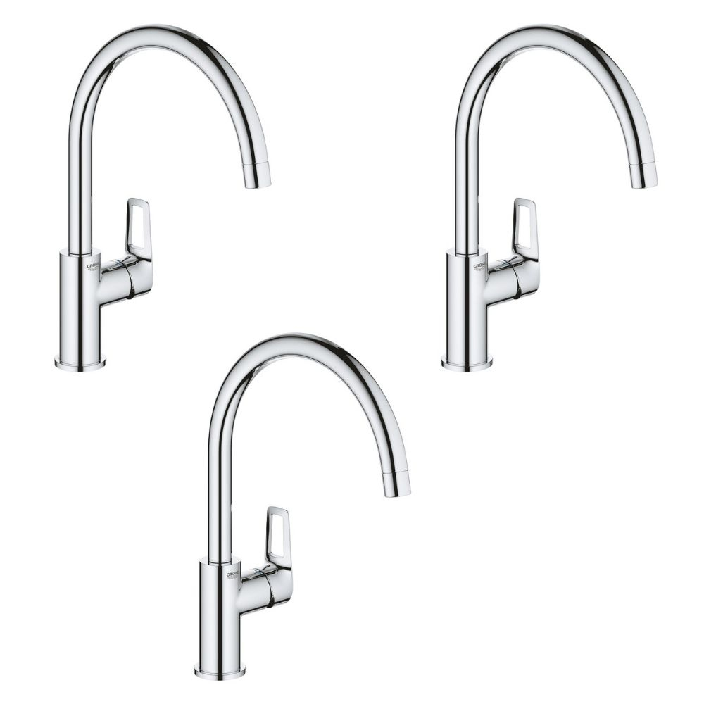 GROHE Lot de 3 Mitigeurs cuisine Bauloop Bec haut chrome