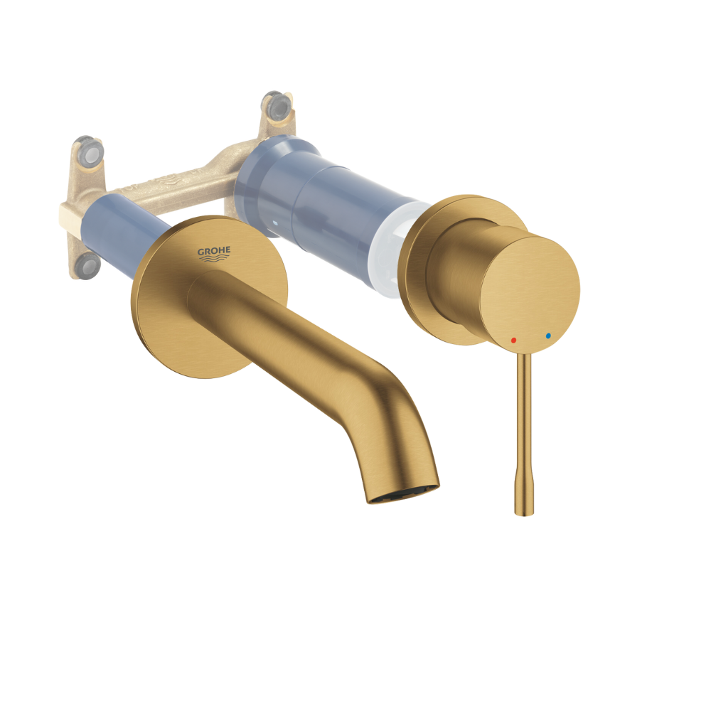 GROHE Mitigeur mural lavabo Essence Taille M Cool sunrise brossé + corps encastré