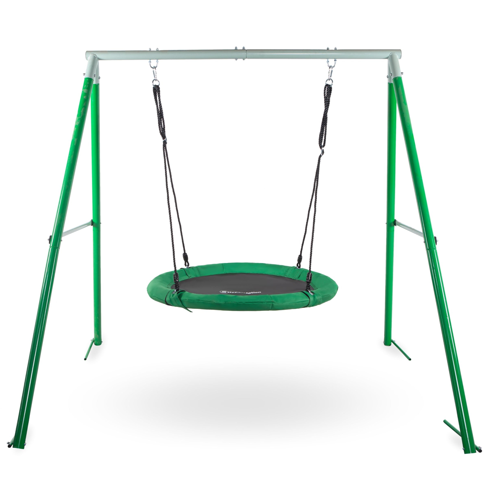 Balan√ßoire de jardin de type nid de cigogne avec cadre et cordesOffrez à votre tout-petit des jeux extérieurs passionnants pour qu’il découvre le plaisir de se balancer. Créez-lui un espace s√ªr et attrayant dans le jardin. Une balan√ßoire confortable deviendra vite l’endroit préféré de votre enfant !Si vous souhaitez que votre enfant passe plus de temps dans le jardin qu’avant, installez une balan√ßoire nid de cigogne. Ce qui le distingue, c’est sa construction extrêmement solide et sa grande durabilité. Equipé d’un cadre en forme de A, il présente une stabilité exceptionnelle et garantit la sécurité lors du balancement. Une balan√ßoire en nid de cigogne offrira aux enfants un plaisir fantastique. Ce sera également un endroit parfait pour se détendre.Caractéristiques principales :balan√ßoire faite de matériaux durables et de haute qualitédestiné à 1-2 personneshaute résistance à l’eau, aux intempéries et aux rayons UVpropriétés de séchage rapidelongueur de corde réglable entre 0,85 et 1,4 mconstruction de cadre solide en forme de Amontage facilecharge maximale 150 kg ! design moderne et minimalistedans des tons de vert foncé et de grisadapté aux enfants de plus de 3 ansUne balan√ßoire pour enfants est une fantastique idée cadeau ! Il offre non seulement du divertissement, mais soutient également le développement moteur des enfants , en renfor√ßant leurs muscles, leur coordination motrice et en améliorant leur sens de l’équilibre.specifications:dimensions : 183 (hauteur) x 200 (largeur des pieds) x 174,5 (profondeur) x 164 cm (longueur de la barre transversale) matériaux : cadre – 4 tubes Q195 galvanisés et thermolaqués (diamètre 25 mm, épaisseur 1 mm) avec mousse EPE (épaisseur 1 cm), tapis – tissu PP noir avec coussinet polyester, 2 cordes PE (diamètre 10 mm) réglage de la corde dans la plage de 0,85 à 1,4 mpoids – 19,1 kgdiamètre de la douille – 102 cmcharge maximale : 150 kgSécurité:La balan√ßoire nid de cigogne répond à la norme de sécurité EN71 , présente une surface lisse et des bords arrondis. Il a été créé sur la base de normes de qualité élevées, garantissant une utilisation longue et s√ªre.