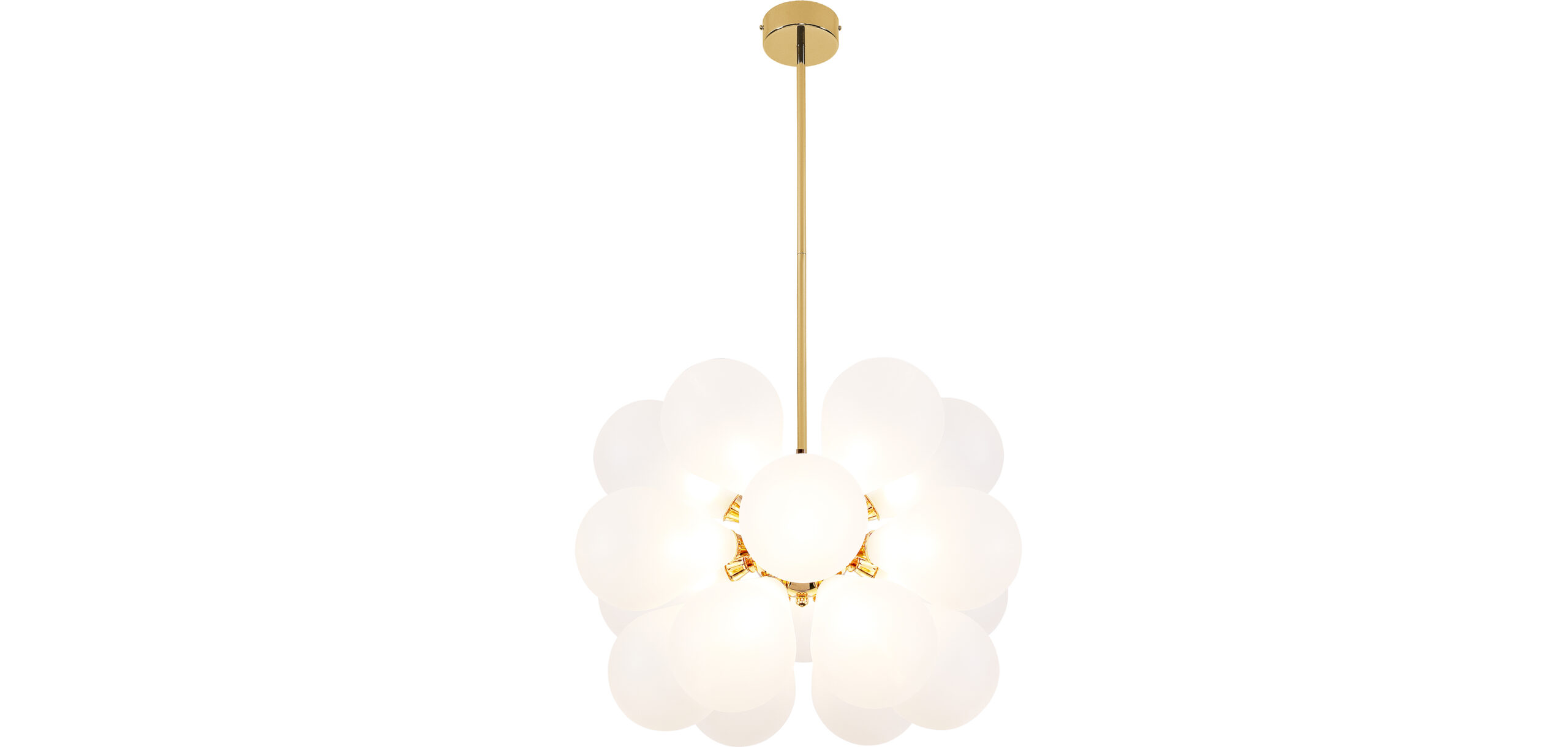If you are looking for a ceiling lamp that makes the difference, this beautiful lamp with 18 LED bulbs is ideal for you. Made of metal and glass globe lampshades, this hanging lamp stands out for its luxurious and sophisticated appearance.