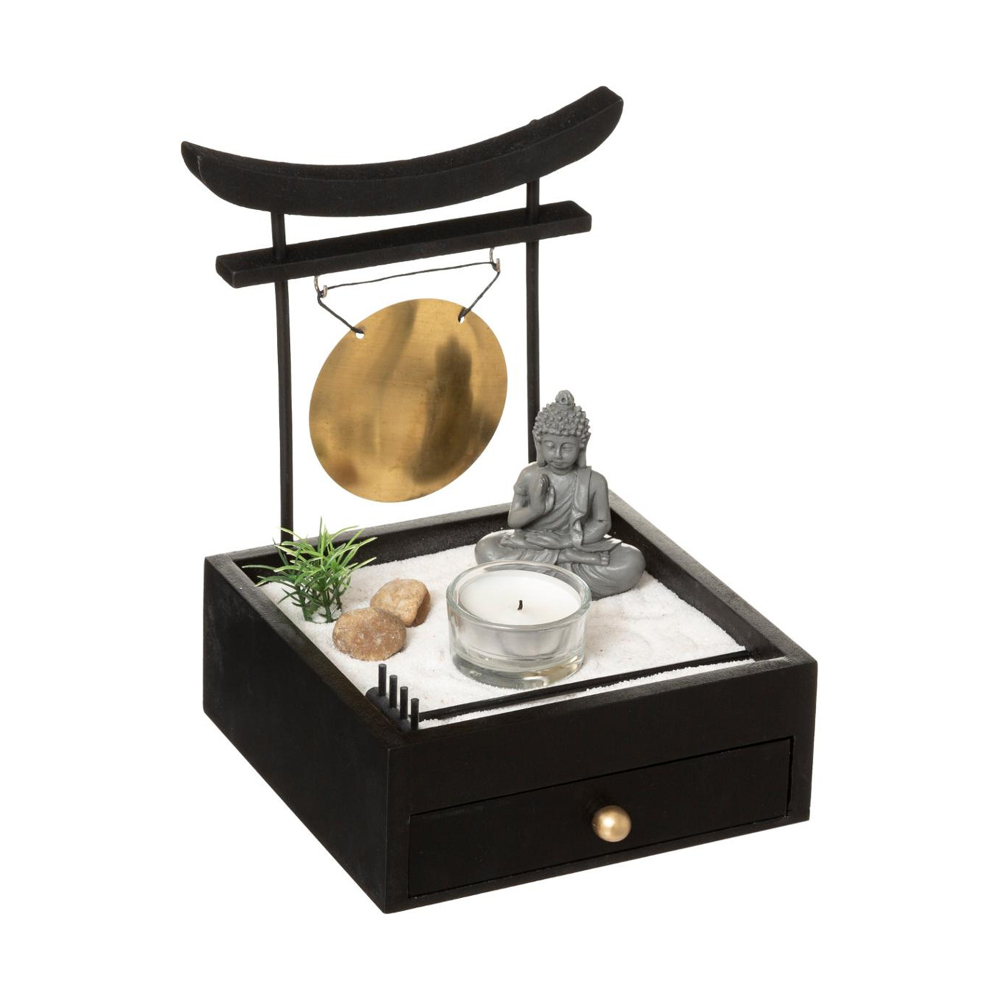 Jardin Zen Coffret Tiroir Bouddha avec Bougie, Gong et décoration