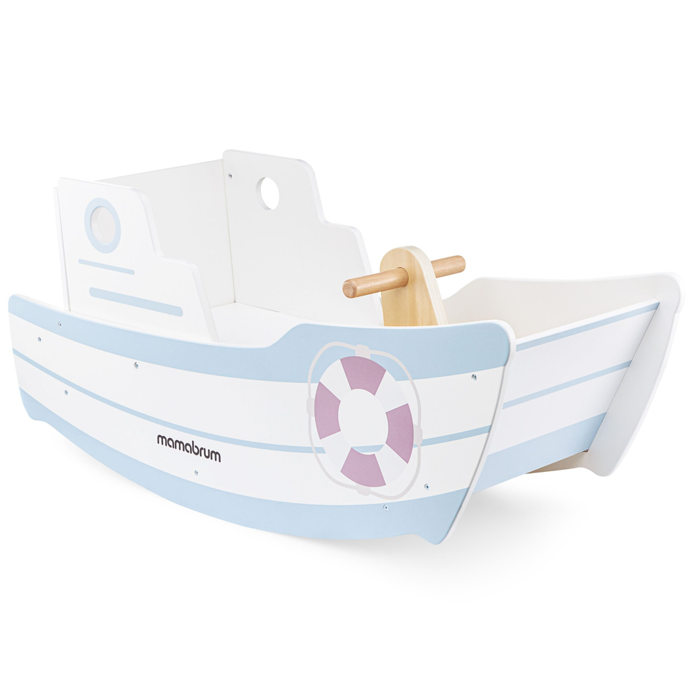 Jouet à Bascule Bois Mamabrum, Grand Bateau à Bascule pour Enfant +18 mois Jusqu’à 25 KG, Siège spacieux avec dossier, Peinture √âcologique