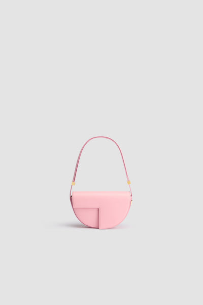 Rosebloom Pink leather handbag. Half-circle shape with geometric cut-outs inspired by the JP monogram. Gold-tone hardware with Patou-engraved detail at the side. Adjustable strap that allows it to be worn on the shoulder, across the body or carried by hand. Magnetic closure with gold-tone JP detail. Internal compartment. Eco lining.