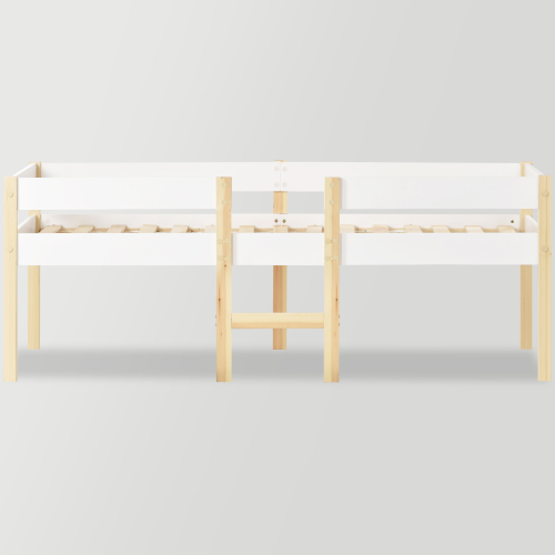 Un lit aussi individuel que votre enfantÔºöUn très beau lit mi-hauteur pour jouer et dormir.Le style scandinave moderne de ce meuble en bois naturel s’adapte à presque tous les intérieurs de chambres d’enfants. Avec ce mini-lit superposé, vous exaucez le souhait de votre petit rayon de soleil de disposer d’un univers de jeu et de sommeil passionnant et vous conférez en outre à la chambre d’enfant un charmant flair rétro.Construction stable en pin massifÔºöLe mini lit mezzanine est fabriqué à partir de deux matériaux extrêmement stables qui conviennent parfaitement à une utilisation dans la chambre d’enfant. Il est fabriqué en pin de haute qualité et, gr√¢ce à son matériau robuste, il offre la stabilité nécessaire pour résister même aux ébats les plus fous de votre enfant. . Les montants d’angle sont en outre fabriqués en pin massif pour conférer au lit une stabilité encore plus grande.Plus s√ªr vers le niveau de sommeil ÔºöLe lit mi-haute dispose d’une protection antichute périphérique avec une zone d’accès étroite, de sorte que votre enfant peut dormir en toute sécurité et protégé. Pour que votre enfant puisse monter en toute sécurité jusqu’au plan de couchage, même s’il est plus jeune, il peut également utiliser l’échelle pour accéder au niveau de couchage.Plus d’espace de rangement possibleÔºö L’échelle basse fait du coucher une petite attraction chaque soir et vous pouvez utiliser l’espace ainsi gagné sous le lit comme espace de rangement supplémentaire pour les livres à lire et les jouets.SpécificationsÔºöDétails raffinés : la peinture blanche délicate souligne le caractère convivial et lumineux du meuble et rend le lit attrayant aussi bien pour les filles que pour les gar√ßons. Dimensions totales Ôºö198 x 97 x77 cm (L x H x P) Largeur d’accès Ôºö35 cmSurface de couchage Ôºö90 x 200 cm Max. Poids maximum de l’utilisateurÔºö 120KG/264 LBS (L x H x P)Poids net/brut Ôºö25/26.8KG Matériau du plateau pin massif
