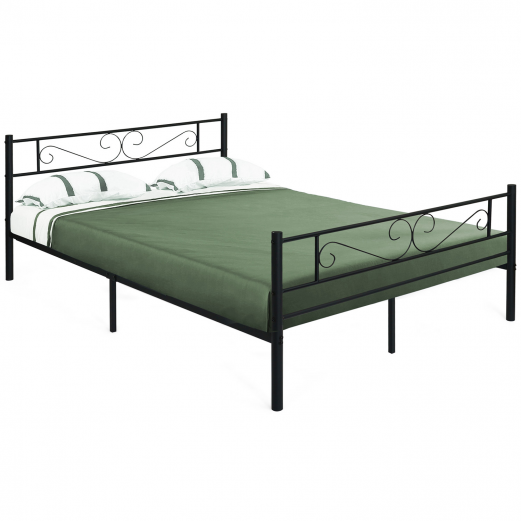 Lit Double TAMPA en Métal Noir 140×190 cm avec Tête et Pied de Lit Arrondis