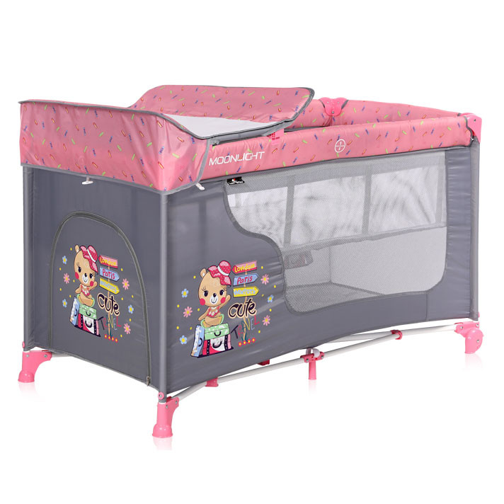 Lit parapluie bébé / Lit pliant berceau à 2 niveaux lit de voyage Lit d’appoint MOONLIGHT 2 lorelli rose