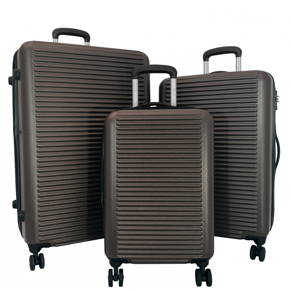 matière : ABSpoids Colis (kg) : 12.5poids (kg) : 11.3Détails extérieurs : Fermeture zippée,4 doubles roulettes doubles garantissant stabilité et maniabilité multidirectionnelles (360¬∞),1 canne de traction télescopique avec bouton poussoir, multi positions,1 poignée supérieure pour un port vertical,1 poignée latérale pour un port horizontal (excepté la valise cabine),4 picots de protection sur le côté (excepté la valise cabine),1 serrure à code de type TSA (homologué douanes américaines),1 soufflet d'extension, dimension largeur avec extension :Valise Cabine : 29cmMoyenne Valise : 32cmGrande Valise : 35cmSiglé DAVID JONES.Détails intérieurs : Grande et Moyenne valise : 2 compartiments se fermant à l'aide d'une cloison zippée incluant 2 poches plates zippées dont une avec un filet, Valise Cabine : 1 pochette latérale plate zippée,1 compartiment avec sangles croisées élastiques pour le maintien des vêtements,Doublure tissu siglée David Jones.Composition du lot :Valise cabine :- dimensions (cm) : L 35 x H 55 x P 25- volume (litre) : 40.7 L- poids Colis (kg) : 3.000Valise 68cm :- dimensions (cm) : L 45 x H 69 x P 28- volume (litre) : 68.48 L- poids Colis (kg) : 3.900Valise 79cm :- dimensions (cm) : L 53 x H 78 x P 31- volume (litre) : 104 L- poids Colis (kg) : 4.600Les dimensions indiquées sont les dimensions extérieures des bagages, comprenant poignées, roulettes, pieds, poches latérales et autres éléments extérieurs.Concernant les sacs à main ne tenez pas compte des anses ou bandoulières.Couleur : Chocolat