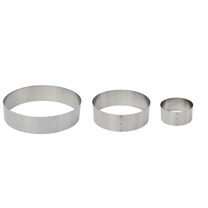 Informations Techniques :Dimensions : Taille 1 : D. 10 x H. 4,5 cmTaille 2 : D. 15 x H. 4,5 cmTaille 3 : D. 20 x H. 4,5 cmMatières : Métal & Acier inoxydableSpécificités :Pratique & UtileLot de 3 Cadres à P√¢tisserieForme RondeIdéal pour le Montage de G√¢teaux & Entremets dignes des plus grands professionnels de la P√¢tisseriePoids : 0,228 kgCouleur : Argent