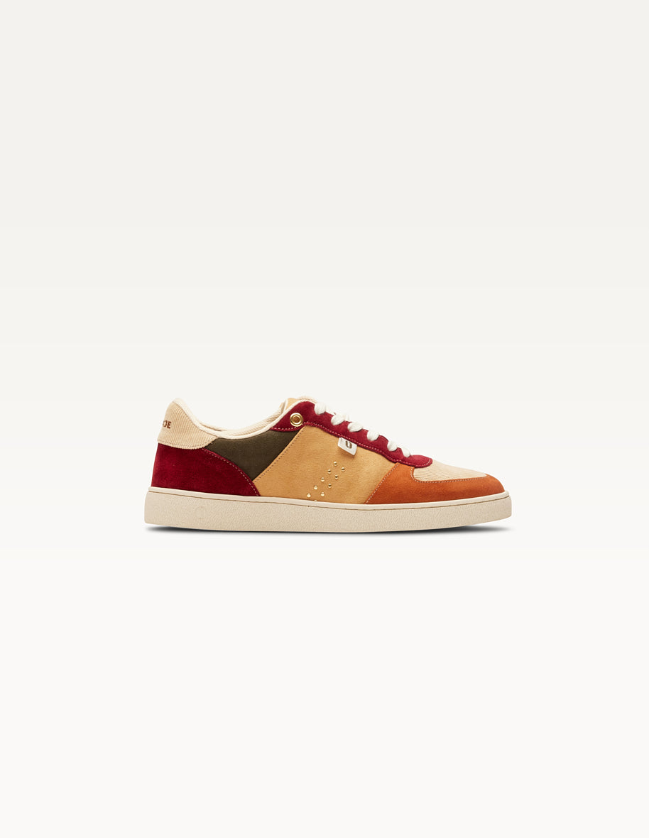 – Eco-friendly low-top trainers – Made from vegan suede, velvet, and LWG-certified leather sourced from Spain and Portugal – Crafted in our Portuguese workshop – Recycled sole made from shoes and recycled rubber – White organic cotton laces – Sole height: 2.5 cm – Lining and insole in mesh