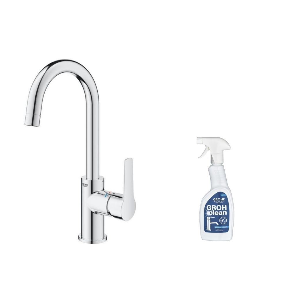 Mitigeur lavabo GROHE Quickfix Start 2021 avec tirette et vidage taille L + nettoyant GrohClean