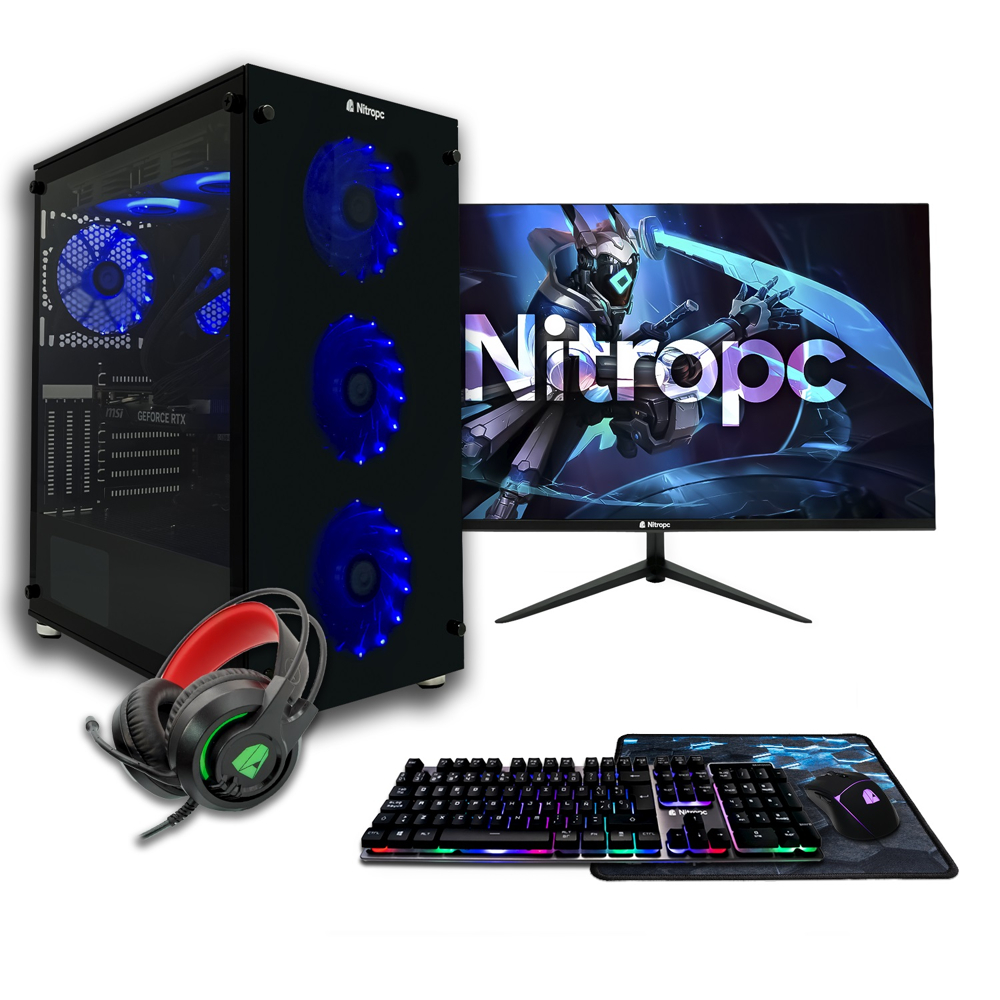 Bienvenue dans le Gold Pack et dans ce que le milieu de gamme a de mieux à offrir. Mettez son superbe processeur polyvalent à l’épreuve dans les jeux ou dans des t√¢ches de productivité plus avancées. Il contient tout ce dont vous avez besoin pour une expérience complète : un Nitropc, un moniteur, un clavier, une souris, un tapis de souris et un casque. Ne faites aucun compromis.Jouez à vos jeux préférés et les plus populaires. Profitez-en en FULL HD, avec de bons FPS et sans saccades. Prêts pour des sessions intensives, ils sont le Nitropc parfait pour vous lancer dans le jeu compétitif. Que vous vous entra√Æniez pour devenir un pro ou que vous vous lanciez dans le monde du streaming et de l’édition vidéo, vous le ferez avec un Nitropc qui ne sera pas en reste.Spécifications Nitropc Pack Gold v2Processeur: AMD Ryzen 5 5600X (6 c≈ìurs, 12 fils, 3.7GHz jusqu’à 4.6GHz)Dissipateur de CPU: Refroidissement liquide RGB (radiateur de 240mm)Carte mère: Chip B550Carte graphique: AMD Radeon RX 6600 8GoMémorie RAM: 16Go (2√ó8Go) 3200MHz DDR4Stockage: M.2 1To NVMeVentilateurs: 4√ó Ventilateurs avec LEDs bleues, 2√ó Ventilateurs avec LEDs RGBSystème d’exploitation: Windows 11 activéPorts avant:1√ó USB 3.02√ó USB 2.0Jacks pour microphone et casquePorts arrière:1√ó HDMI 2.13√ó DisplayPort 1.44√ó USB 3.2 Gen 12√ó USB 2.01√ó PS/21√ó Ethernet (RJ45)3√ó Jack(s) de audioDimensions: 36.5 √ó 22.5 √ó 47.0 cmContenu de la bo√ÆteOrdinateur gamer Nitropc Pack Gold v2Adaptateur Wi-Fi USB 300Mbps√âcran Nitropc Pulse 24 pouces FullHD 1080p 120HzPack clavier et souris NKM1000S: clavier rétroéclairé RVB et souris RVB et DPI dynamique (200~8000)Tapis de souris NMP100: taille moyenne (29 √ó 25 cm)Ecoutiers NH1000v2: ecoutiers RGB avec microphoneInstructions de démarrageBo√Æte contenant la documentation et le c√¢ble d’alimentation
