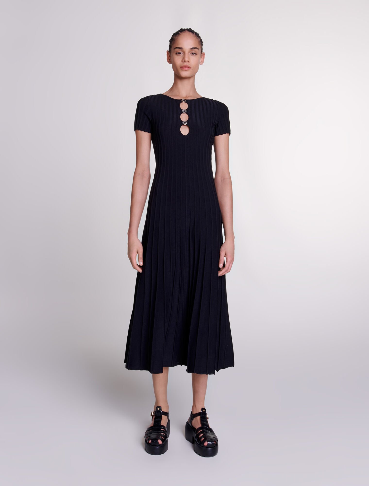 Avec sa coupe près du corps, cette robe longue en maille effet côtelée se porte comme une seconde peau. Munie d’un col rond et de manches courtes, elle séduit par ses détails irrésistibles : un décolleté ajouré et ponctué de boutons bijoux Clover et une jupe évasée sur les côtés.