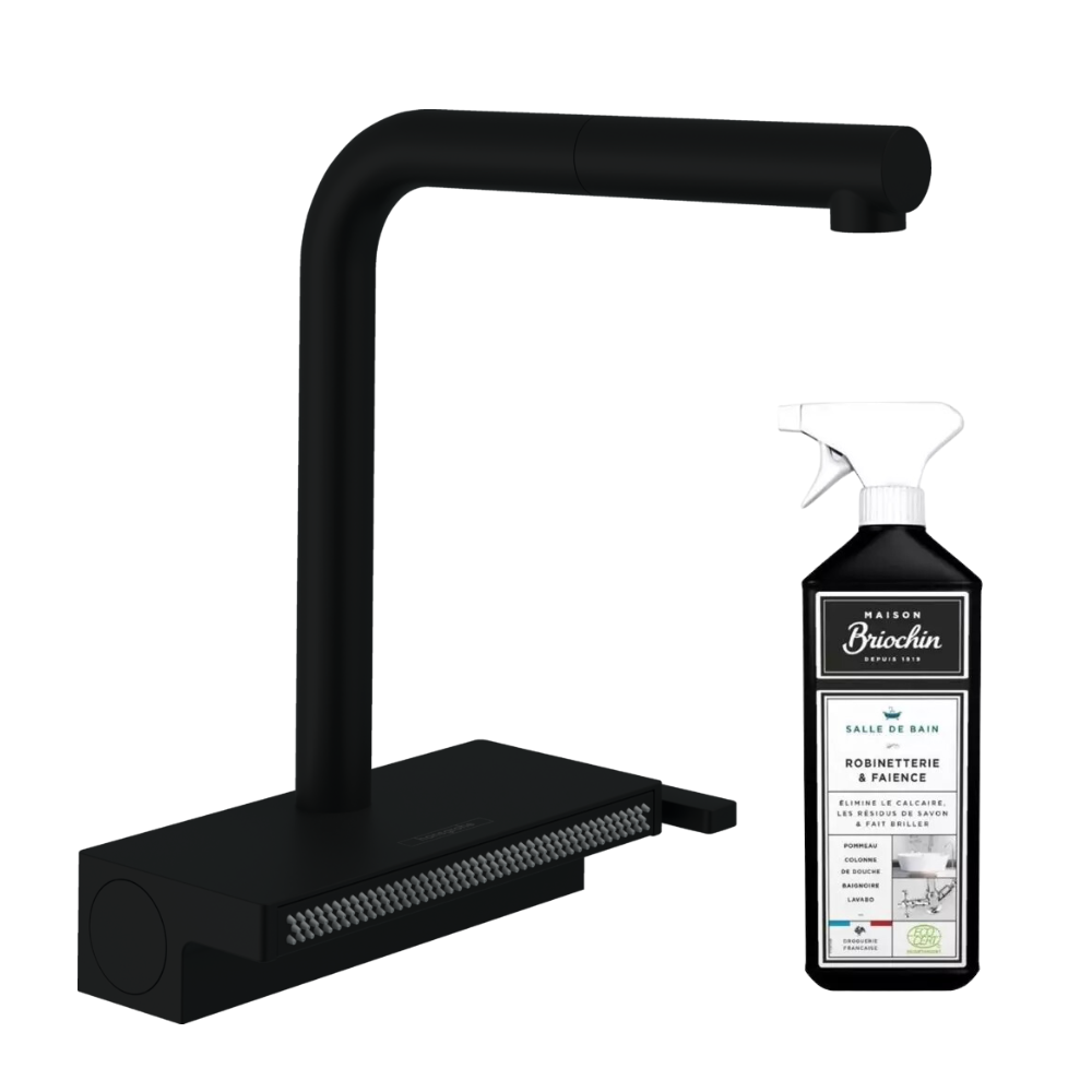 Avantages du mitigeur cuisineTechnologie ComfortZone Hansgrohe : espace optimisé entre le mitigeur et l’évierTechnologie sBox Hansgrohe : gain de place garantiTechnologie QuickClean Hansgrohe : nettoyage facile et rapideTechnologie Select Hansgrohe : permet de couper ou d’ouvrir l’eau par simple pression sur un boutonBec orientable sur 3 niveauxDouchette extractible aimantéeJet large situé à la base du mitigeurCaractéristiques techniques du mitigeur cuisineColoris : noir matNombre de jets : 2Types de jet : jet laminaire, eau claire et généreuse sans ajout d’air et jet large, doux et plat sans éclaboussuresSupport de douchette magnétique MagfitBec en LCartouche céramiqueFlexible de raccordement ‚Öú”Clapet anti-retour intégréDiamètre de per√ßage requis : 35 mmComprenant : mitigeur de cuisine, raccordement flexibles, set de fixation, matériel de montage, instructions de montageDébit maximal sous 3 bars de pression : 6L/minNe convient pas aux chauffe-eaux instantanésAvantages et caractéristiques techniques de la passoire pour évier Hansgrohe noir matIdéale pour nettoyer et rincer les fruits et les légumesIdéale pour égoutter les aliments tels que les p√¢tesFacile à installer, à manipuler et à retirerDurable, léger et hygiéniqueColoris : noir matMatériau : synthétiqueDimensions (L x l x P) : 42,6 x 19 x 12,3 cmCompatible avec les éviers S51 Silicatec Hansgrohe, Eviers S71 en acier inoxydable Hansgrohe et éviers jusqu’à 41 cm de longueurConseils d’entretien de votre mitigeur de cuisine HansgroheTous les produits corrosifs sont déconseillés.Un nettoyage régulier permet de limiter le dépôt de calcaire.Il est déconseillé de vaporiser les produits nettoyants directement sur la robinetterie mais plutôt sur un chiffon doux.Rincer abondamment après nettoyage.Avantages du nettoyant robinetterie & fa√Øence BRIOCHIN 750mL EcocertNettoyant 99,9% d’origine naturelle, certifié EcocertParfum pin d’origine naturelleElimine facilement et rapidement le calcaire, les saletés et autres dépôtsFait briller la salle de bainCaractéristiques du nettoyant robinetterie & fa√Øence BRIOCHIN 750mL EcocertContenance : 750mLParfum : pinCertification EcocertTypes de surface : inox, céramique émaillée, acrylique, parcelaine, carrelages murauxPour plus d’informations, consultez la fiche technique du produit.