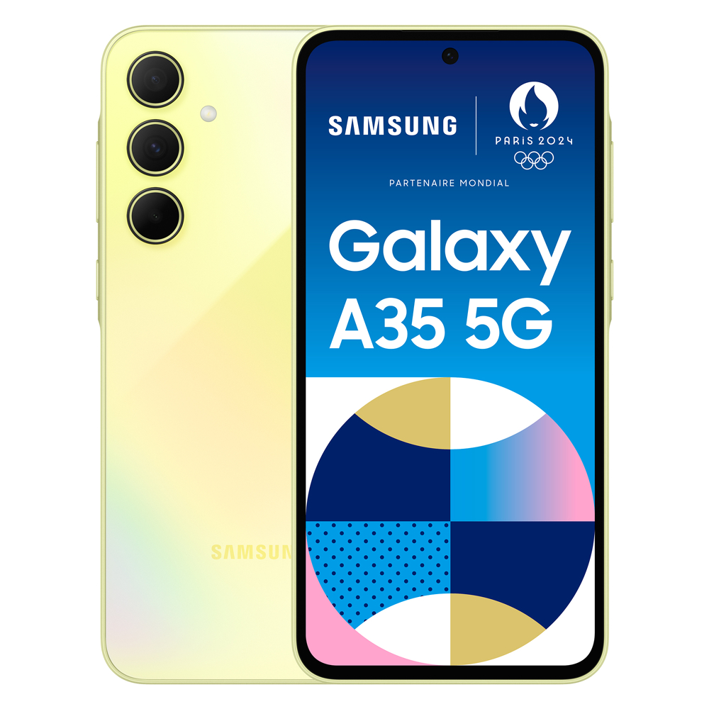 Découvrez le nouveau Samsung Galaxy A35 5G : le compagnon idéal pour rester connecté, productif et créatif o√π que vous soyez.Doté d’un design élégant et épuré avec ses bords plats et ses coloris pop, le Galaxy A35 5G allie finesse et performance pour vous accompagner dans toutes vos aventures. Son écran Super AMOLED de 6.6‚Äô‚Äô en très haute définition (FHD+) offre des couleurs éclatantes et des contrastes saisissants, pour une immersion totale dans vos contenus préférés (jeux, vidéos, séries, films, etc).Gr√¢ce à son processeur Exynos 1380, le Galaxy A35 5G offre des performances fluides et réactives, vous permettant de passer d’une application à l’autre en un instant.Capturez chaque moment de votre vie gr√¢ce à son triple capteur photo et sa caméra selfie. De jour comme de nuit, vous bénéficierez de clichés saisissants, que ce soit lors de vos voyages, de vos soirées entre amis ou de vos moments en famille. Conservez tous ces souvenirs gr√¢ce au stockage de 128 ou 256 Go, extensible jusqu’à 1 To. Enfin, profitez également d‚Äôune autonomie allant jusqu‚Äôà deux jours et une charge rapide de 25W pour une tranquillité d‚Äôesprit.Découvrez une nouvelle manière de vivre et de partager vos expériences avec le Galaxy A35 5G.