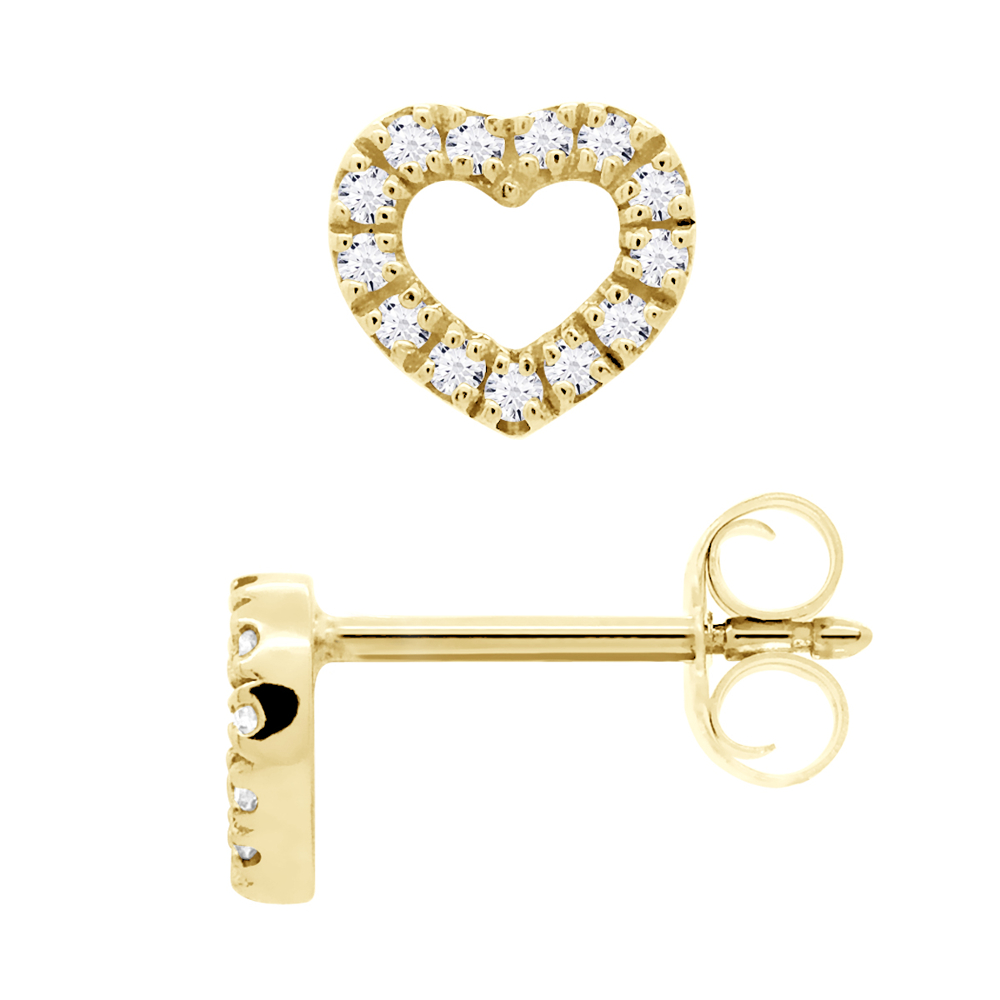 Boucles d’Oreilles Coeur Diamants 0,08 Cts – 2 x 0,04 Cts – Or Jaune 375 Millièmes – Systèmes POUSSETTES – Livrées avec Certificat d’Authenticité et de Garantie Internationale